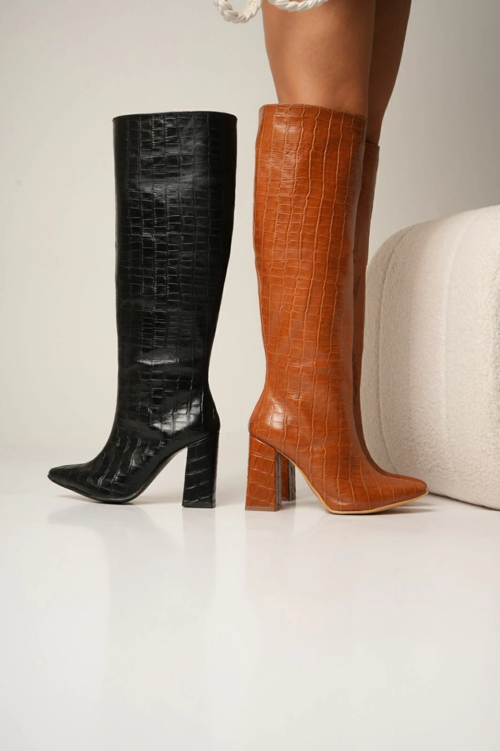 Las botas Veneto son el must-have de esta temporada. Su diseño minimalista y estilizado aporta un toque de elegancia, mientras que su taco cuadrado alto garantiza comodidad y estabilidad. Perfectas para looks sofisticados y modernos.